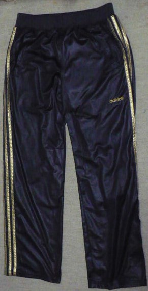 > レア物? adidas(アディダスジャパン株)製(二重構造インナー内蔵)ジャージパンツ M 黒×金