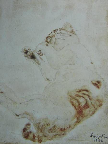- 藤田嗣治、猫、希少な額装用画集画、新品額装付、送料込み、meg