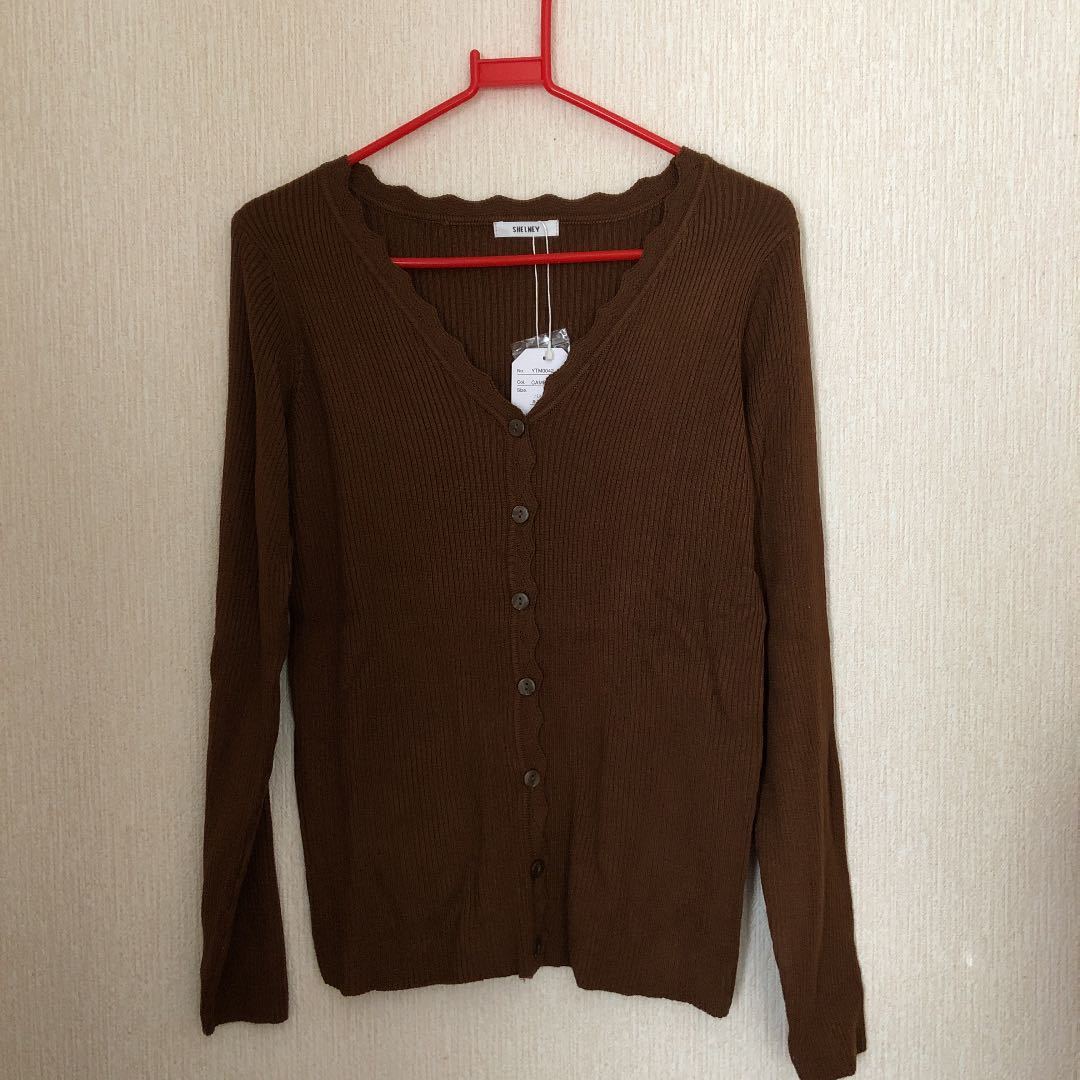 - Vネック リブトップス カットソー Mサイズ ブラウン色