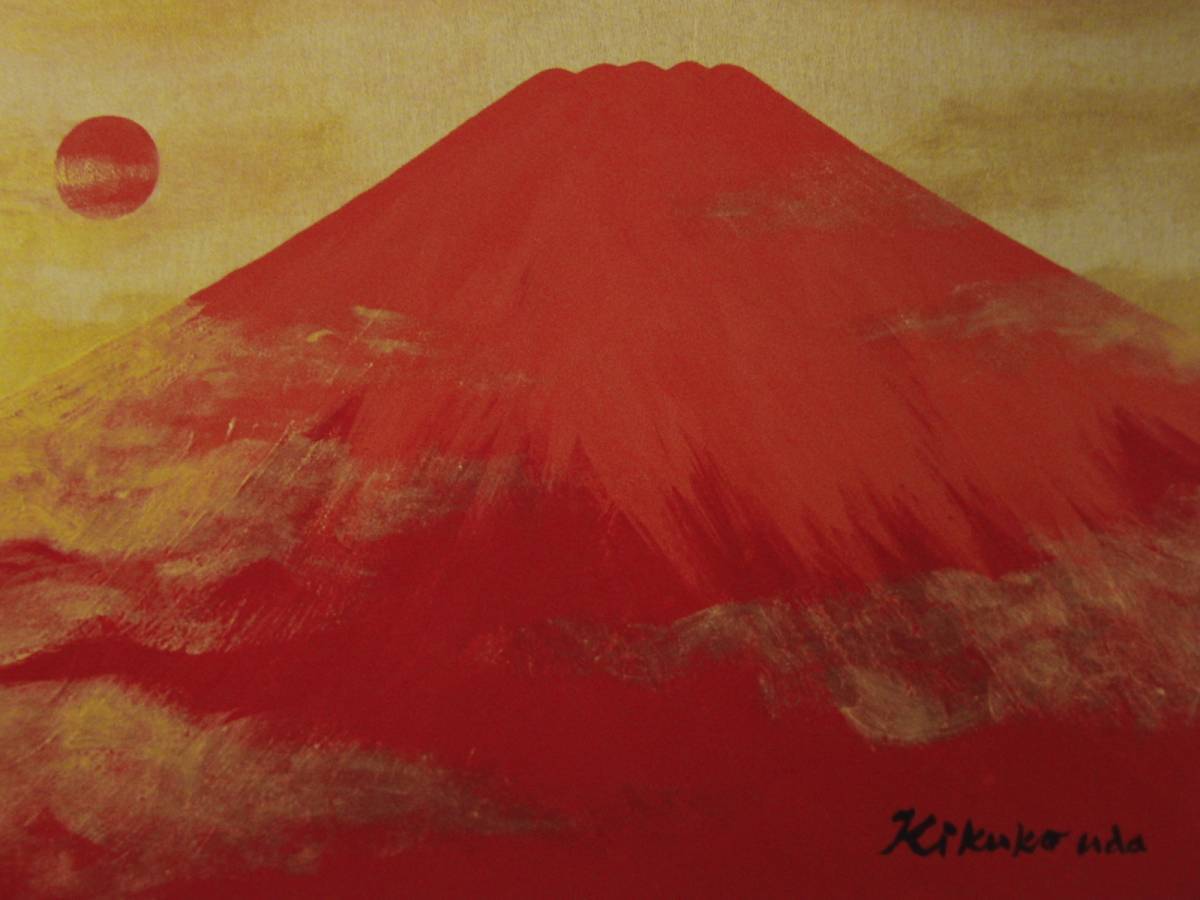 > 宇田喜久子、【旭日富士】、「希少な画集より、状態良好、新品高級額装付、送料無料」、洋画 油彩 日本の画家、富士山、arte