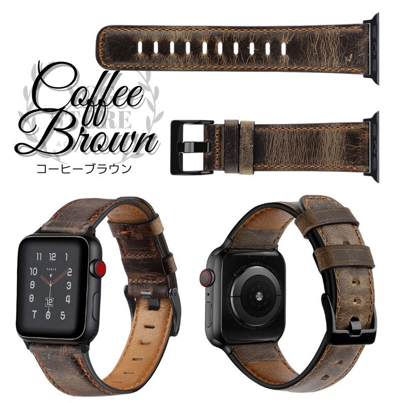 - YGG★Apple Watch アップルウォッチ 本革 ヴィンテージ調 レザー バンド ベルト コーヒーブラウン 焦げ茶 42 44 45 49 対応