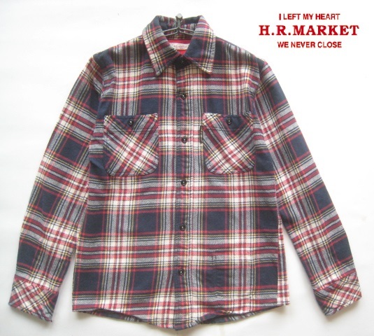 > 美品!!ハリウッドランチマーケット H.R.MARKET*ロゴタグ付き チェック柄ダブルポケット長袖ネルシャツ 1 実寸S ハリラン