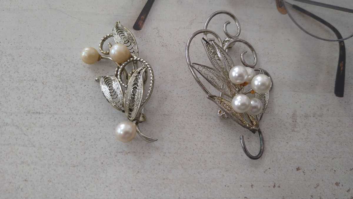 - □訳あり□シルバーカラー×パールビーズの立体ブローチ2個セット□