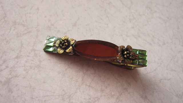 - ネクタイピン アンティーク風 花のチャーム シャビー グリーン ワインレッド