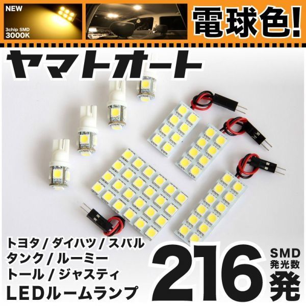 - ★電球色216発★ M910A 新型 ルーミーカスタム LED ルームランプ 8点 暖色 3000K パーツ ライト ROOMY 室内灯 内装品 カー用品 GRANDE