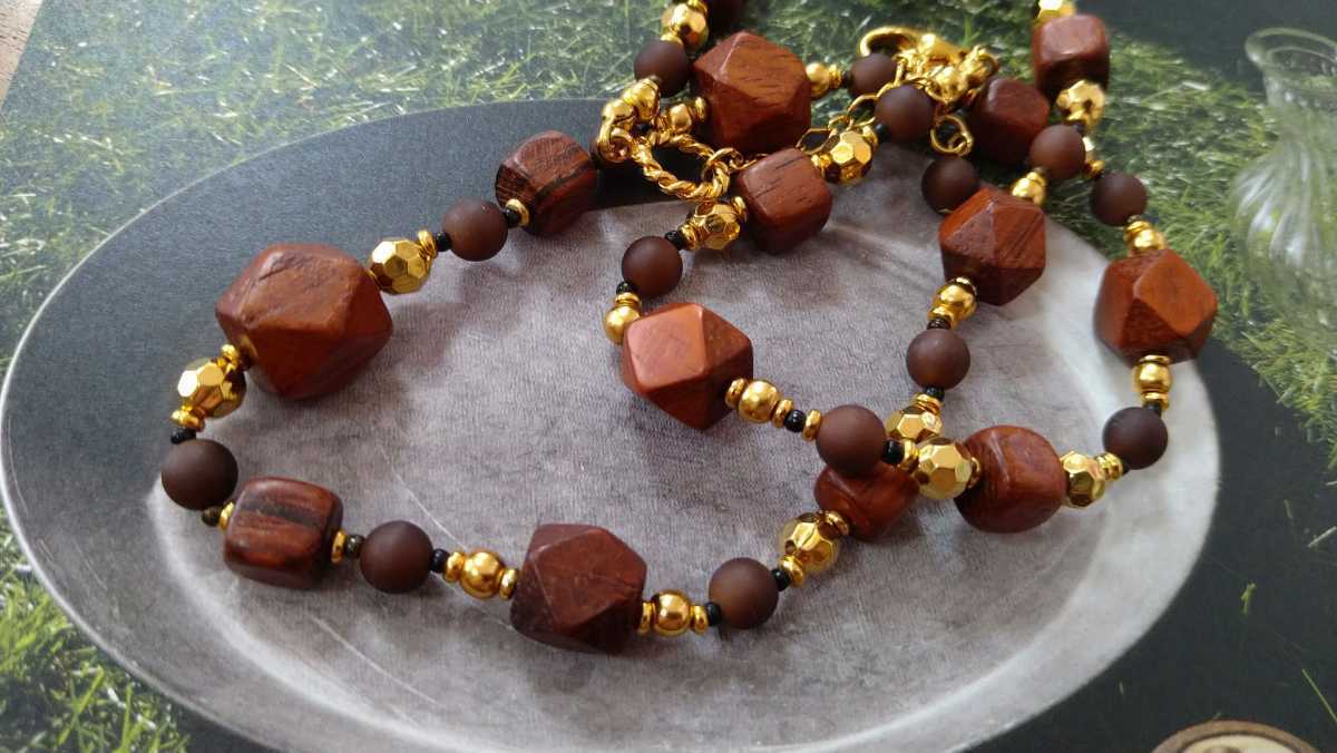 - □ウッドビーズ×ゴールドカラー・ネックレス□