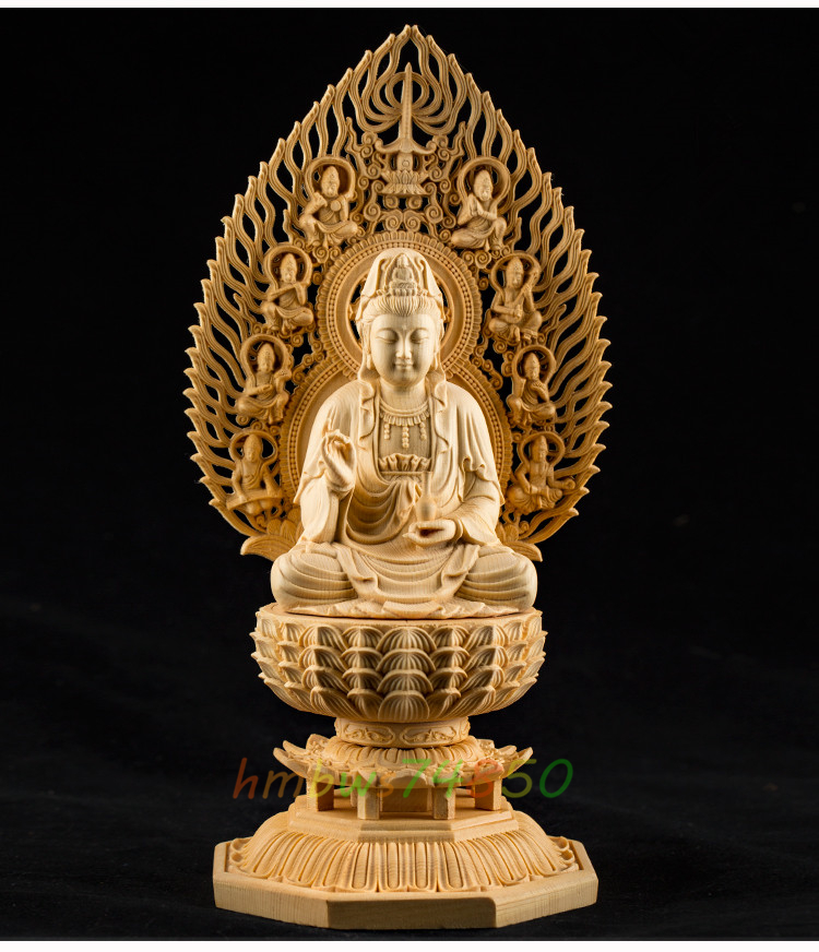 - 極上品 仏教美術 観音菩薩立像 仏像 ヒノキ檜木 精密彫刻 木彫仏像 高さ28cm 収納ケース付属