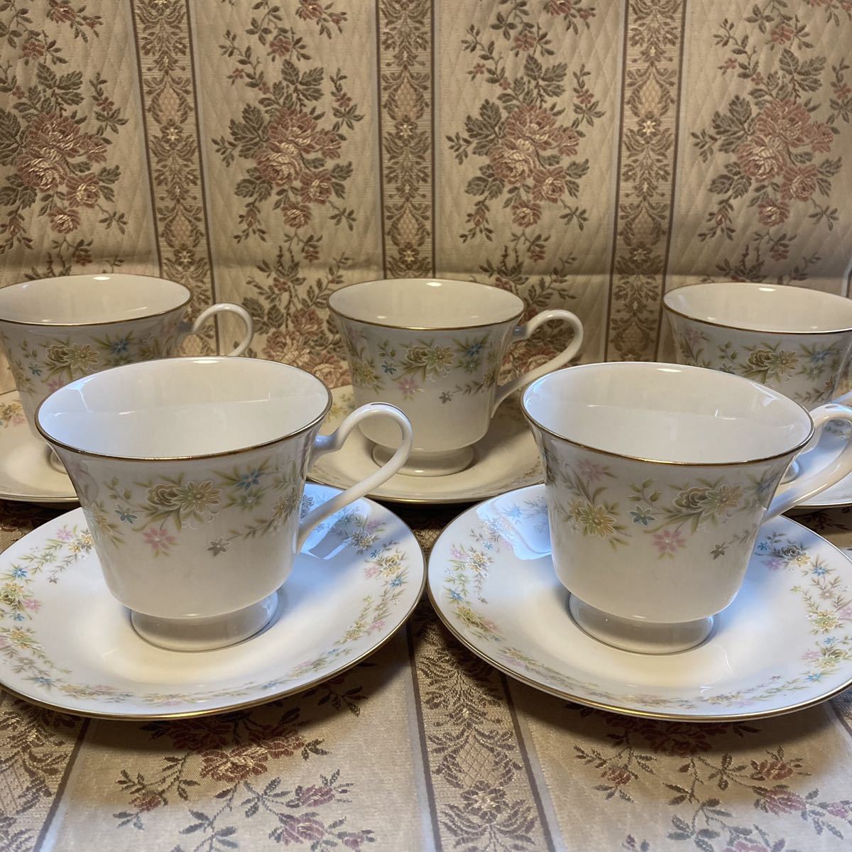 - 新品★ノリタケ コンテンポラリー 花文 カップ&ソーサー 5客セット アイボリーチャイナ レトロ
