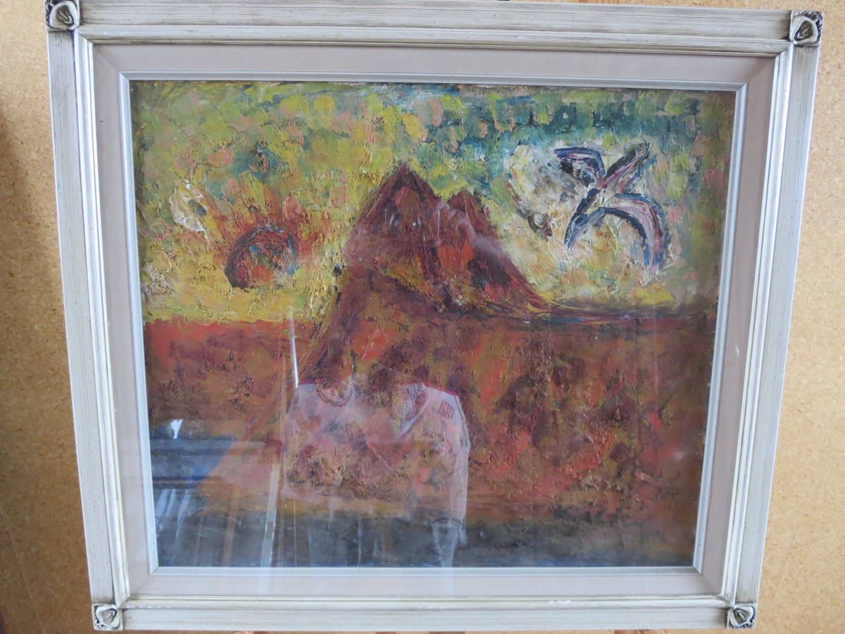 - 送料無料 摩周湖 鳥 山 木崎 額装 油彩