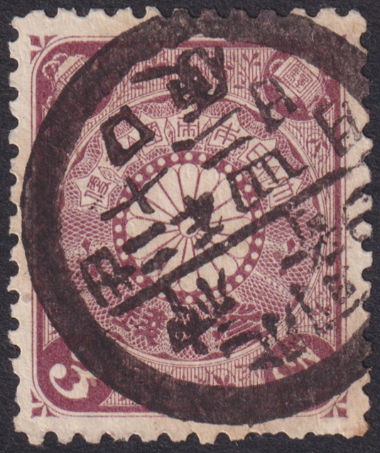 - 菊切手 3銭 丸一型日付印 [肥前 神崎/三十二年四月十二日ロ便] 初期使用例 使用済 満月印 日本切手 0241