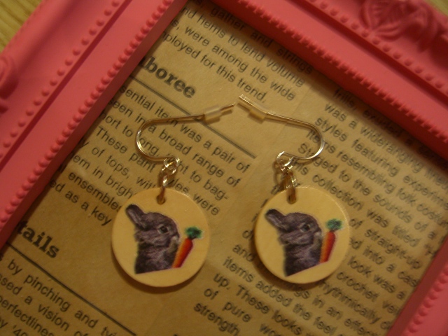 - 即決☆ 可愛い☆新品☆ウッドプリント うさぎ と 人参 ピアス ♪ 木 アニマル 両耳 兎 ウサギ ニンジン 定形外140円☆