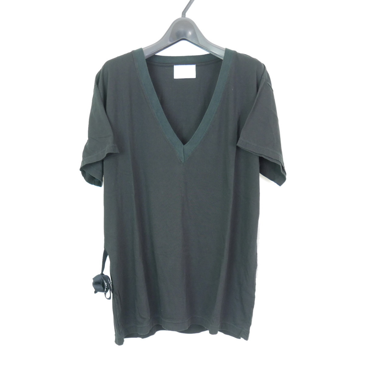 - 18SS The Letters ザ レターズ V NECK NECK STRAP T-SHIRT メッセージテープ ストラップ コットン Vネック 半袖Tシャツ カットソー BLACK S