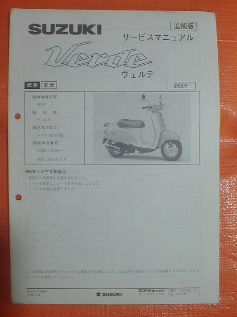 - 14☆★送料無料★スズキ★Verde(BBーCA1MA)【サービスマニュアル追補版/SM】★☆