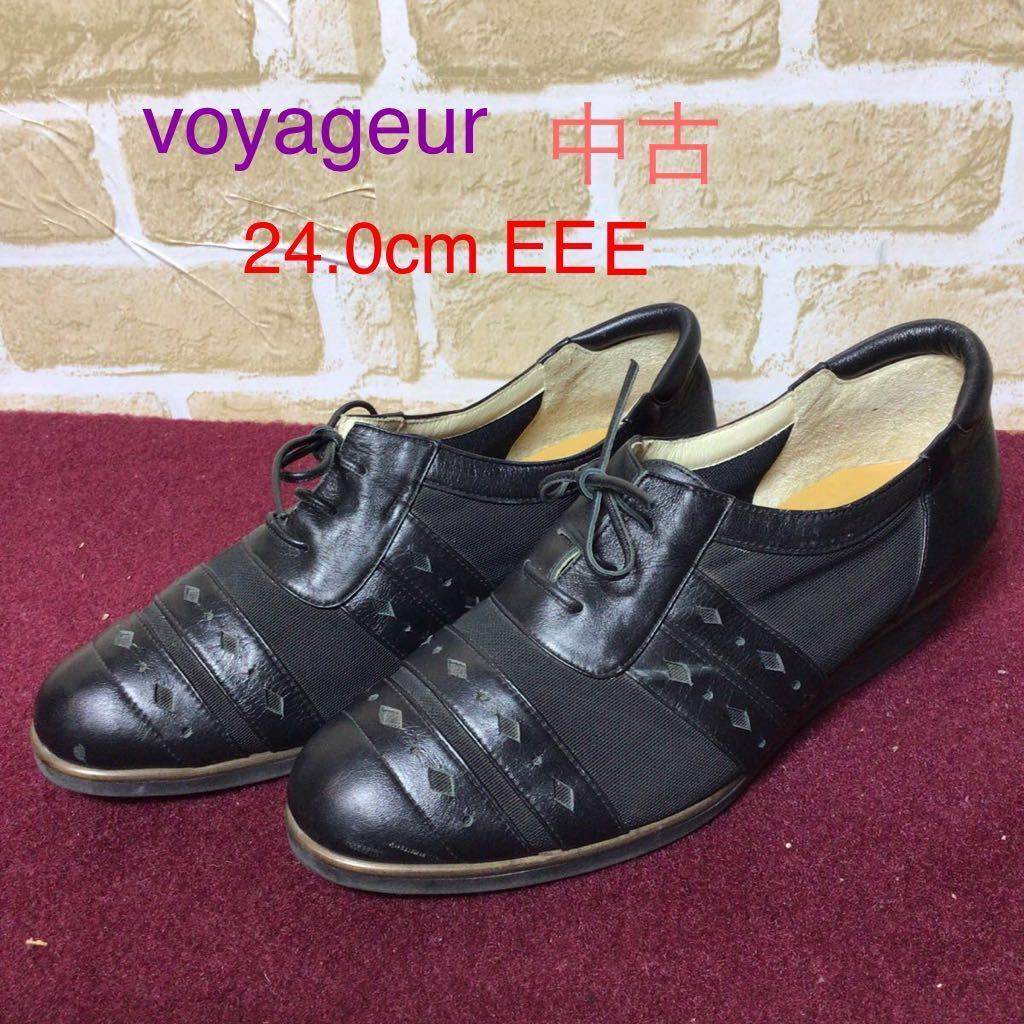> 【売り切り!送料無料!】A-128 voyageur!24.0cm EEE!ブラック!メッシュ!レディースシューズ!婦人靴!軽量!中古!