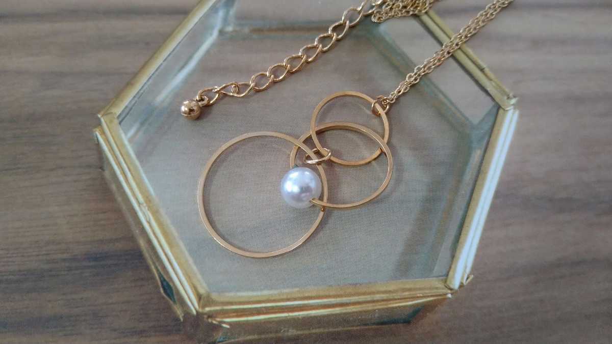 - □未使用□ゴールドカラー3連リング&1粒パールビジュー・ネックレス□