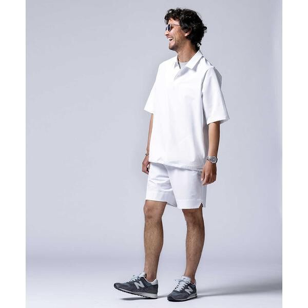 - 3点 WEB限定 セットアップ nano universe SHELTECH 快適男 プランサープルオーバーシャツ スラックス ショーツ ネイビー ワイシャツ S XL