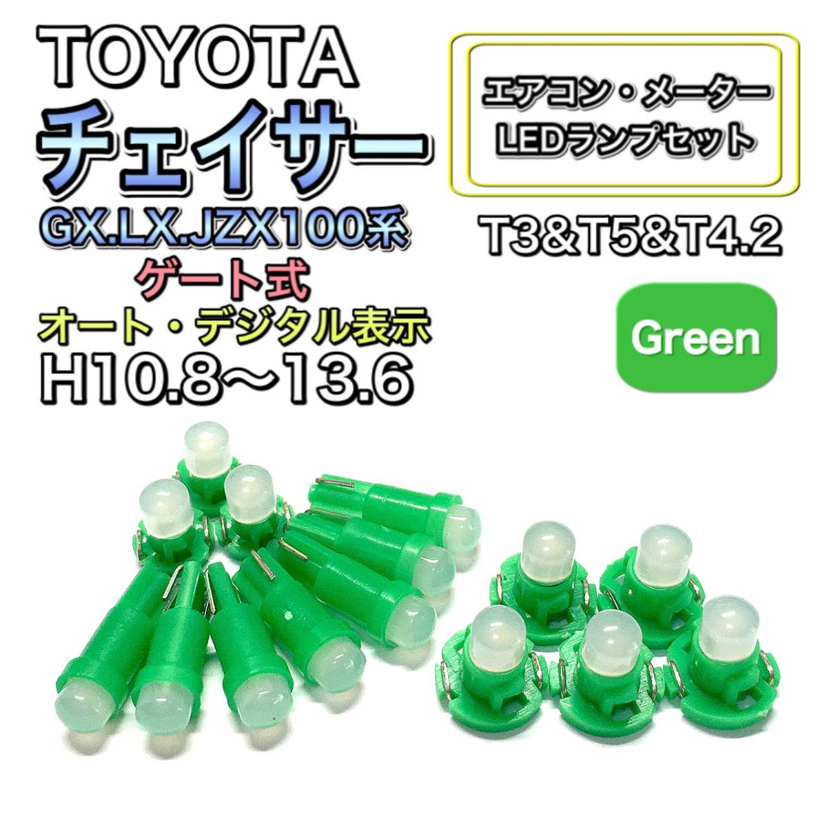 - チェイサーGX.LX.JZX100 マイナー後 ゲート式 オートデジタル 打ち換え LED エアコンメーター T4.7T5 T4.2T3ウェッジ トヨタ グリーン