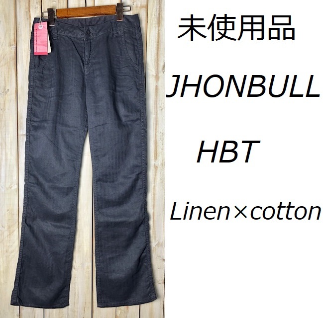 - タグ付未使用品 jhonbull リネンコットン ヘリンボーンパンツ S 製品染め ブーツカット ダークグレー ジョンブル JHON BULL 日本製 ●138
