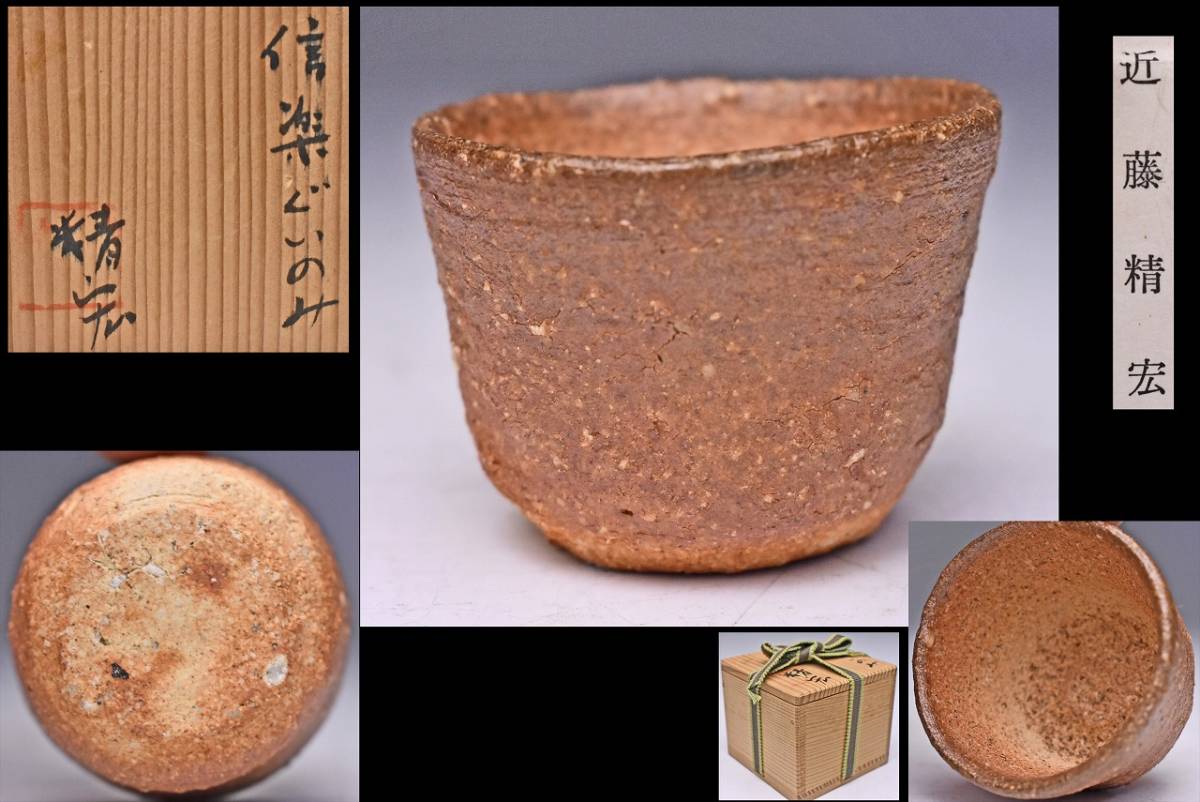 - 近藤精宏 ★ 信楽 ぐい呑 ★ 共箱 栞 ★ 師: 小山冨士夫 ( 古山子 ) ★ 酒器 ★
