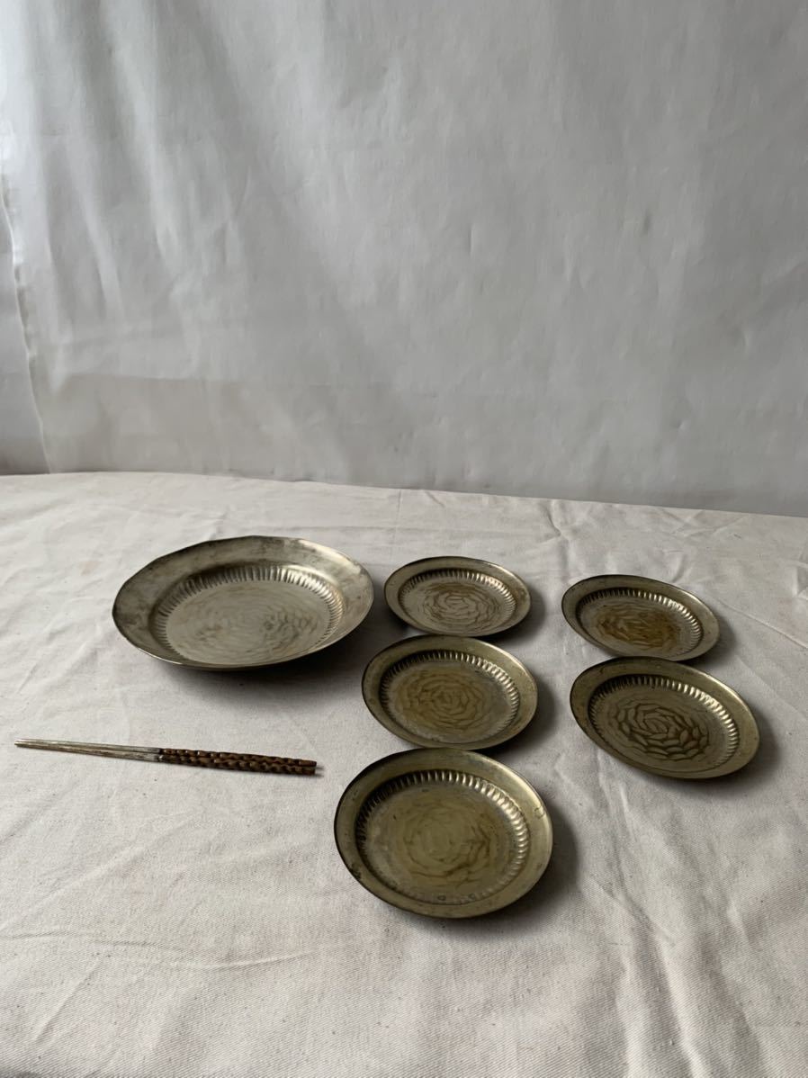 > 旧家蔵出し品 銅製の皿1枚小皿5枚箸セット 古美術骨董古物古道具中国珍品アンティークインテリアディスプレイコレクション飾りレトロ緑青
