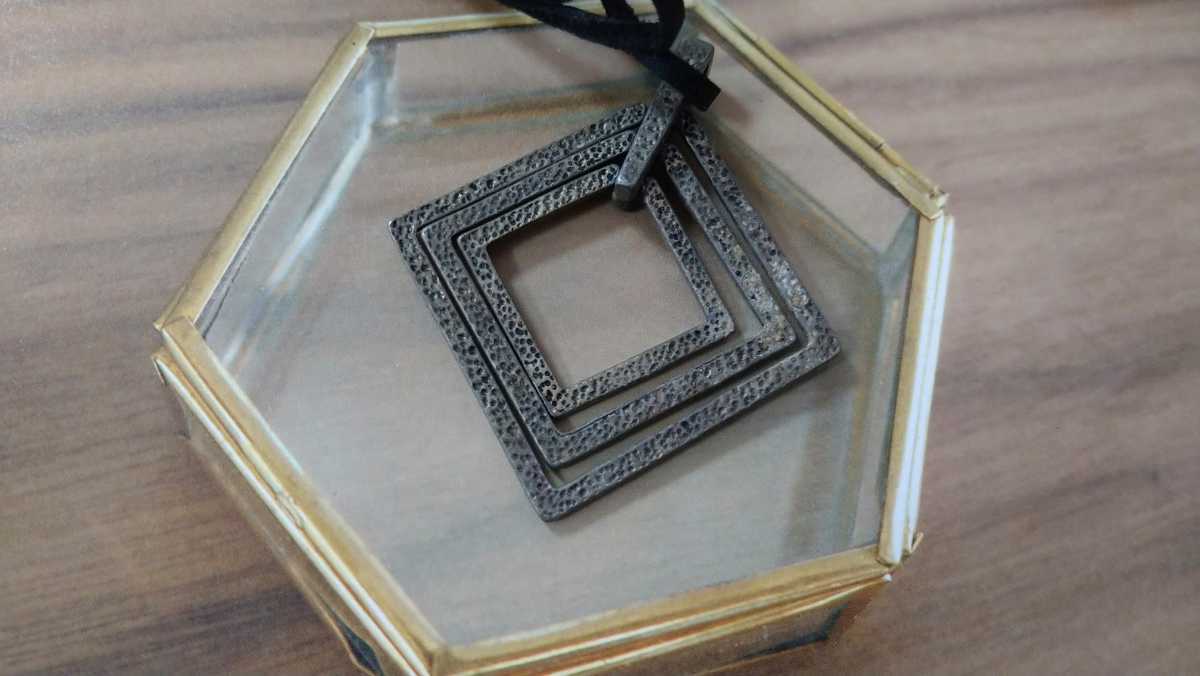 - □訳あり□シルバーカラー・3連スクエア×黒紐・ネックレス□