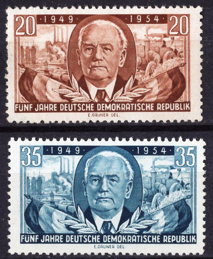 - ★1954年 東ドイツ - 「東ドイツ5年」2種完 未使用(MNH)(SC#224-225)★ZU-402