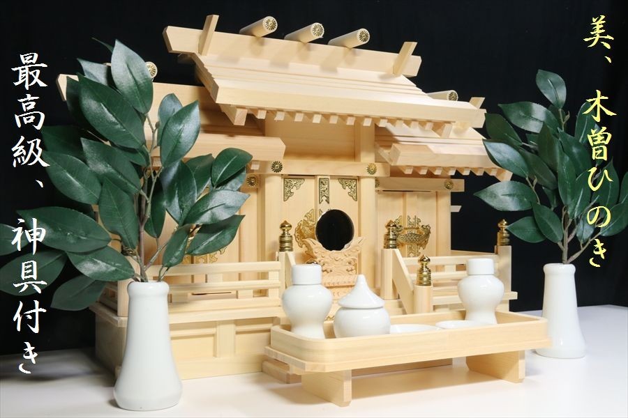 - 美・木曽ひのき■屋根違い三社■木曽桧の神鏡 長膳■神棚セット