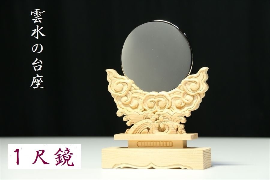 - 特上 雲水彫 神鏡■ 尺/特々大■職人手彫り■モダン神棚 ご神体に