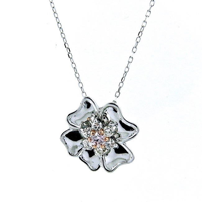 > K18WG ★ネックレス ◇ダイヤモンド0.27ct/0.10ct FLP-S12 4月誕生石 お花 ■ソーティング付き 【中古】 /10023661