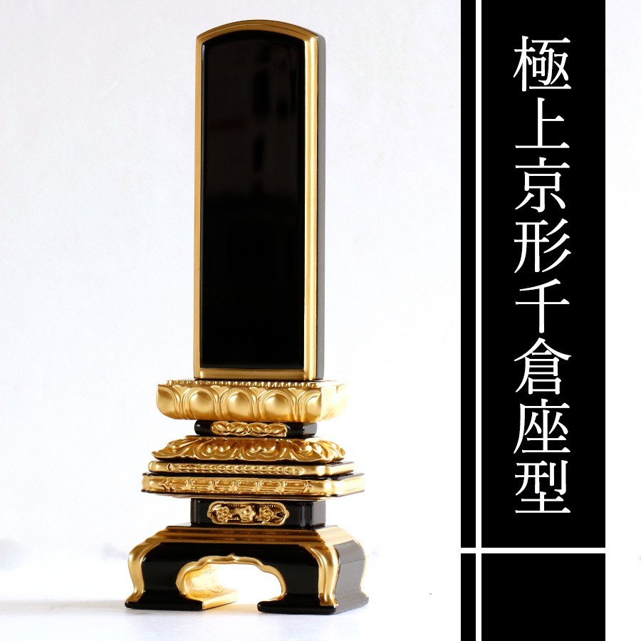 - 位牌 本金粉使用 蓮華付 裏金 極上 京千倉 3.5寸 ■ 文字 彫付き モダン 塗り位牌 高さ18.4cm