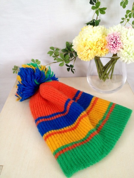 - *大きなボンボンが可愛いカラフルなニット帽・幼稚園サイズ*