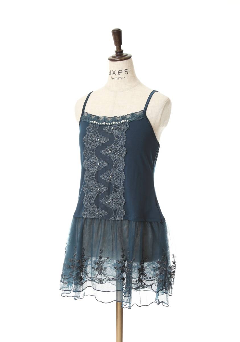 > 413◇ゴージャスレースロングキャミ ブルーグリーン 青 緑 axes femme アクシーズ ファム TS2X491