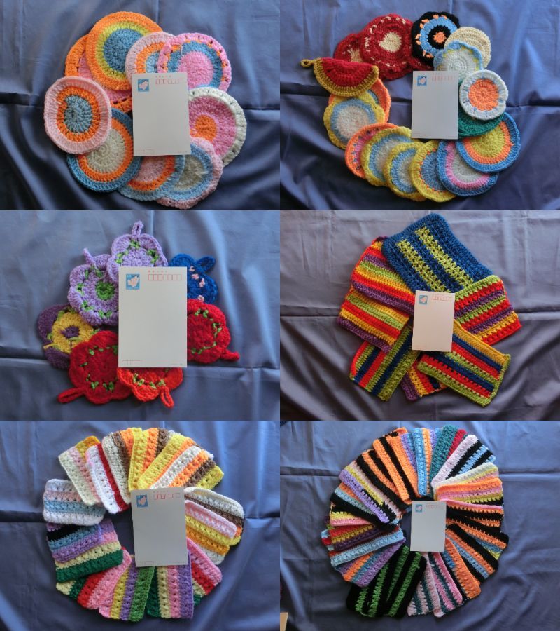 > 【送料無料】アクリルたわし 合計9枚 手作り 各種サイズ ハンドメイド 手編み エコたわし