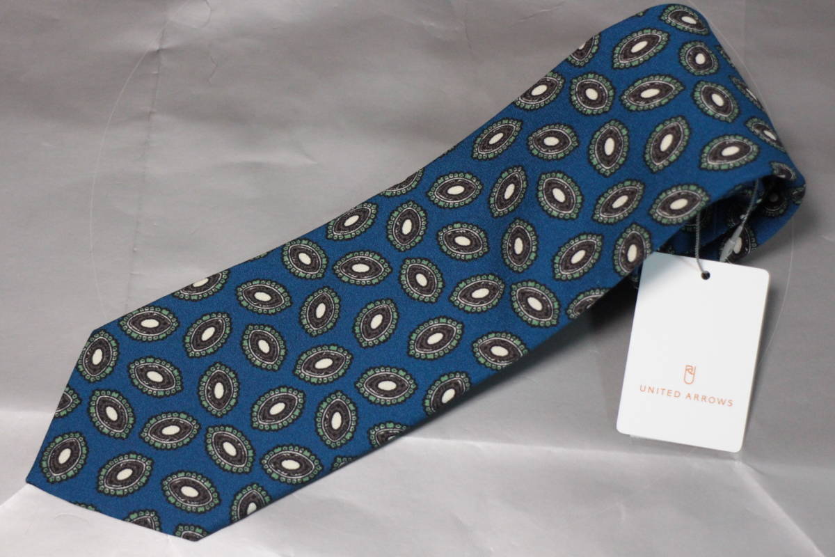 > アルクーリ*アローズ新品ネクタイ超華麗アクアブルー*セージグリーン*ブラウンメダリオン小紋モダンクラシック柄フルハンドメイド