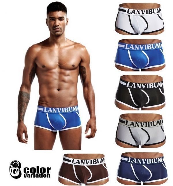 - 送料無料アシンメトリー ボクサー ローライズ ボクサーパンツ メンズ 股間 ポケット 分離 タグレス H0025 ネイビー 3L