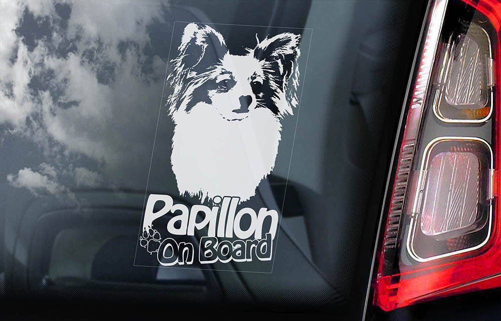 - ◆送無【パピヨン ②】外張り カーステッカー 18×10cm 外貼り 車 カー ステッカー スモークウインドウ シール DOG ON BOARD 犬 D2@2520-1