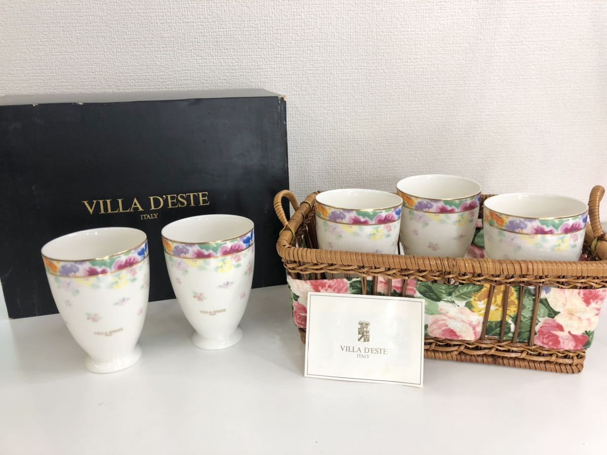 > 美品◆VILLA D'EST ITALY バスケット付フリーカップ 5客セット カゴ付き 箱あり 花柄 食器 管理2110 N-4