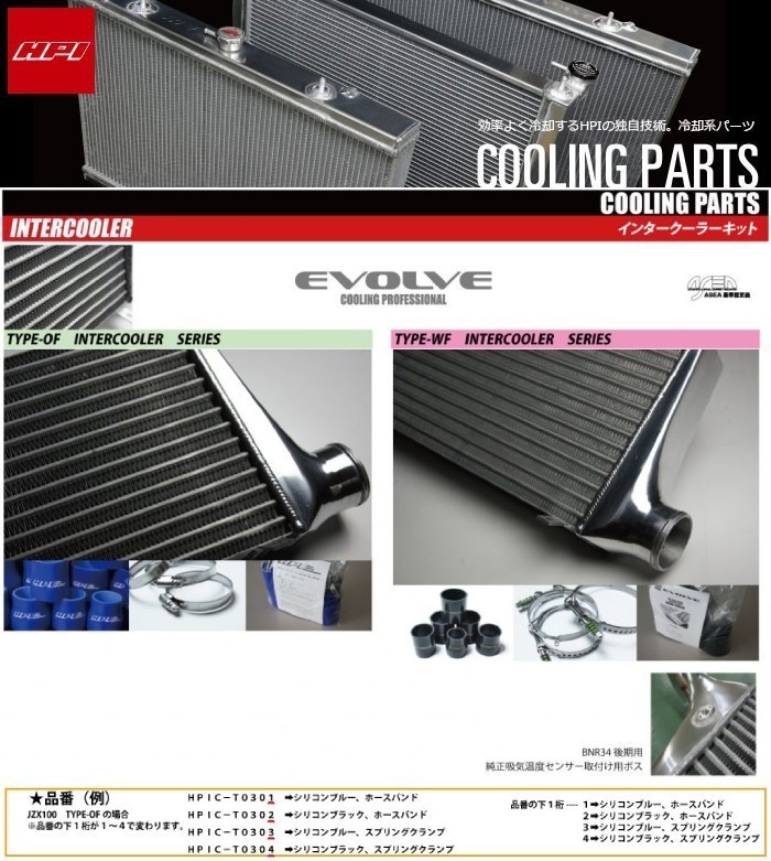 > 【HPI】 エヴォルブインタークーラーキット 72mm厚 spec-S ホース:青 バンド:ホースバンド スカイライン ER34 RB25DET [HPIC-N0701]