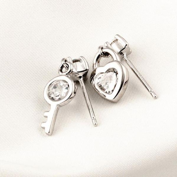 - 可愛い 揺れる ハート 鍵 ロック キュービックジルコニア ピアス