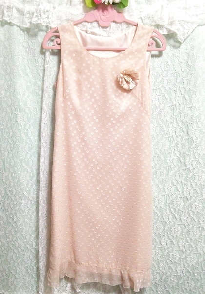 - 亜麻色ピンク薔薇コサージュシフォン ネグリジェ ノースリーブワンピースドレス Flax pink chiffon negligee sleeveless dress