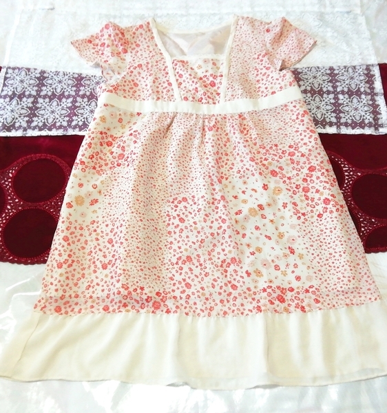 > 赤花柄シフォン半袖チュニック ネグリジェ ナイトウェア ワンピース Red floral chiffon short sleeve tunic negligee nightwear dress