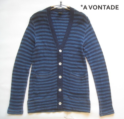 - 美品!!アボンタージ A VONTADE*インディゴ染めボーダー柄サーマルカーディガン M 紺 ネイビー