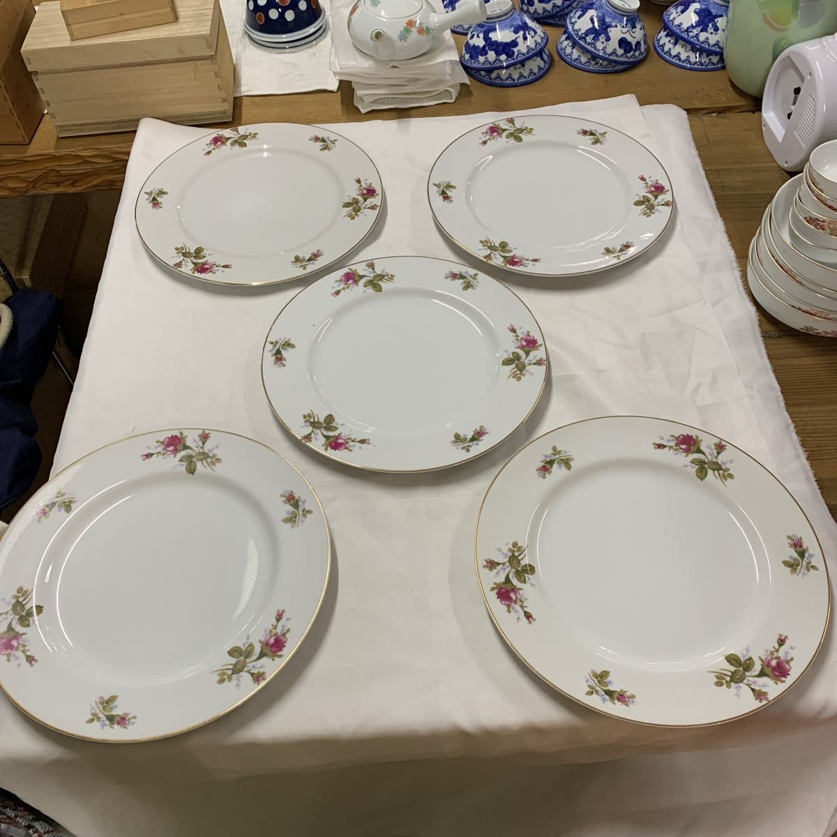 - NC 花柄 日東 大皿 お皿 ディナープレート プレート 金縁 昭和レトロ 計5枚 箱無し