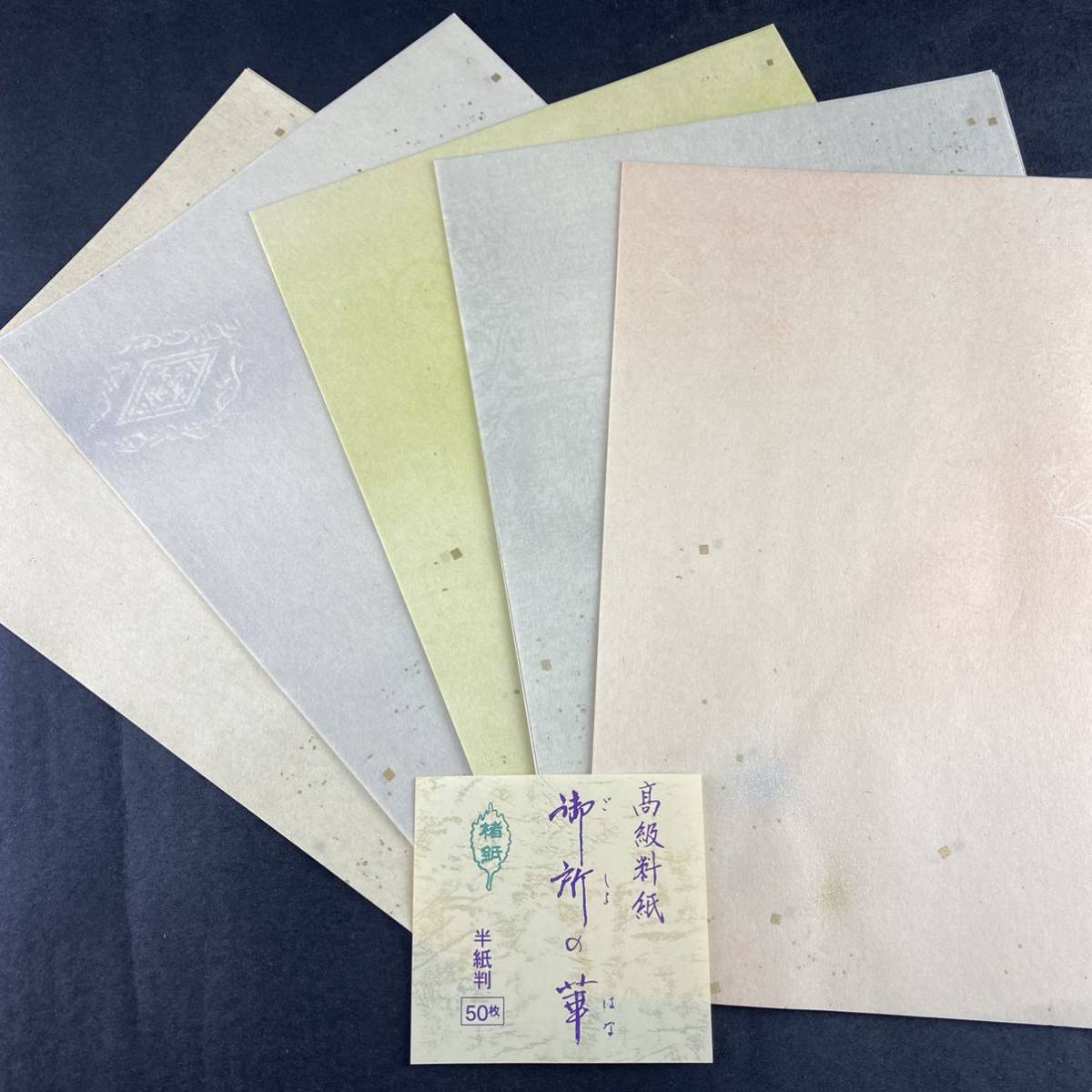 - 新料紙 高級料紙 御所の華 50枚 楮紙半紙 仮名加工紙 細字 書道用紙 作品用紙 文房四宝 書道用品 中字 仮名文字