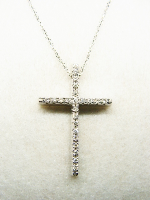 > GARAVELLI ガラヴェリ ◇ K 18 金 750 WG ホワイト ゴールド ダイヤモンド クロス ネックレス 3,9g 0,12ct