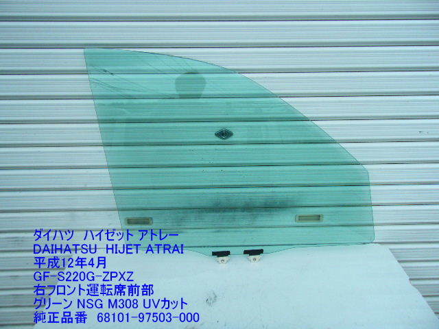> ◆S220G S230G ハイゼット アトレー 右フロント ドアガラス UVカット グリーン NSG M308 68101-97503-000 中古 即決 [10656]