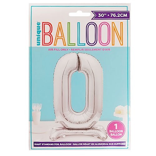 - 送料込 フォイル ナンバーバルーン スタンディング (#0 シルバー) 30 76.2cm 16057 風船 数字 数 大きい 誕生日 パーティーグッズ 飾り