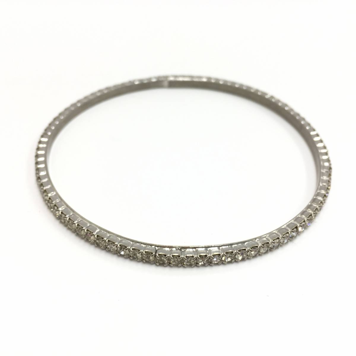 - 【バングル】直径:約6.4cm 腕輪 細身 キラキラのストーンがぐるりと一周! シンプル アクセサリー 銀色 ブレスレット
