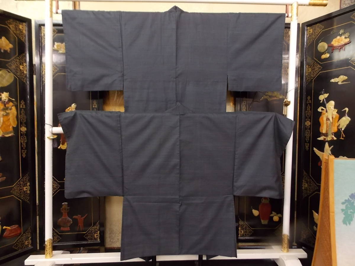 - きもの今昔3080 男のきもの 大島紬アンサンブル 紺色特緯総絣 きもの裏正絹胴裏 羽織肩裏は正絹羽二重