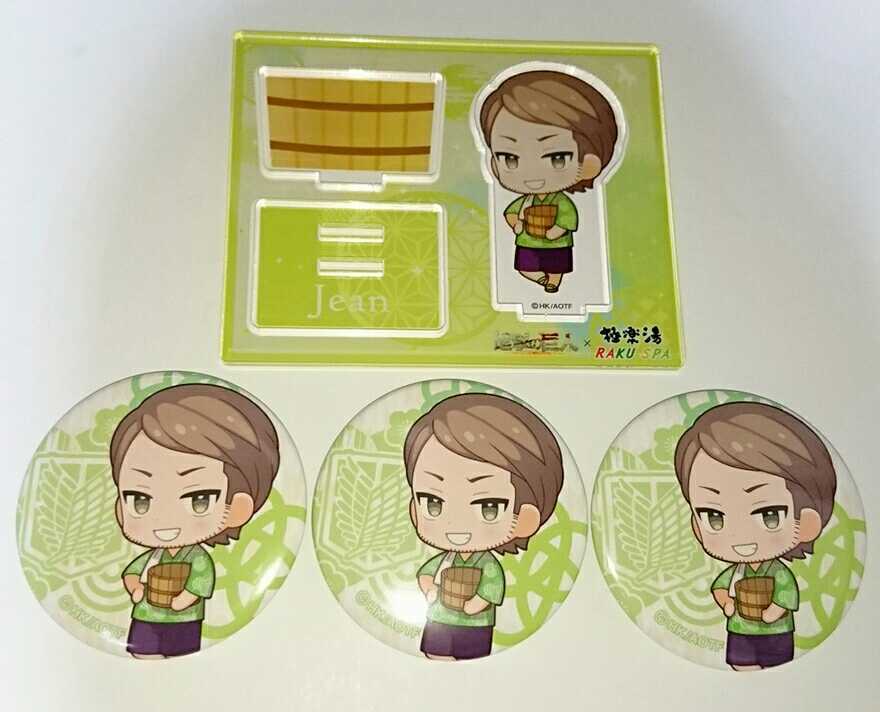 - ☆進撃の巨人※ジャン※極楽湯※RAKU SPA※らくスパ※お風呂の民※アクリルスタンド※アクスタ※缶バッジ※4点セット☆